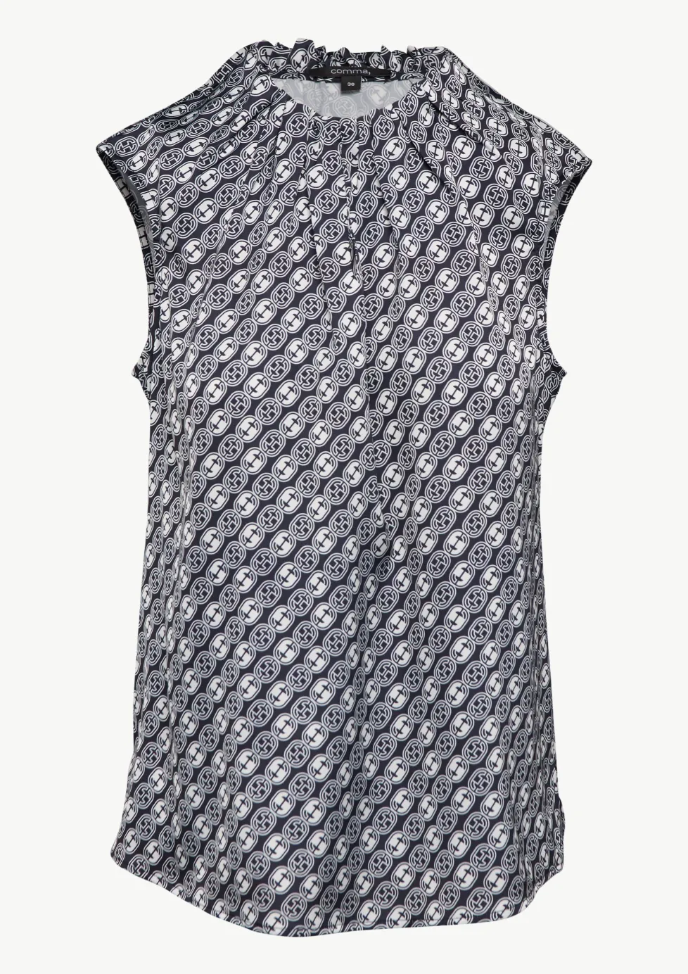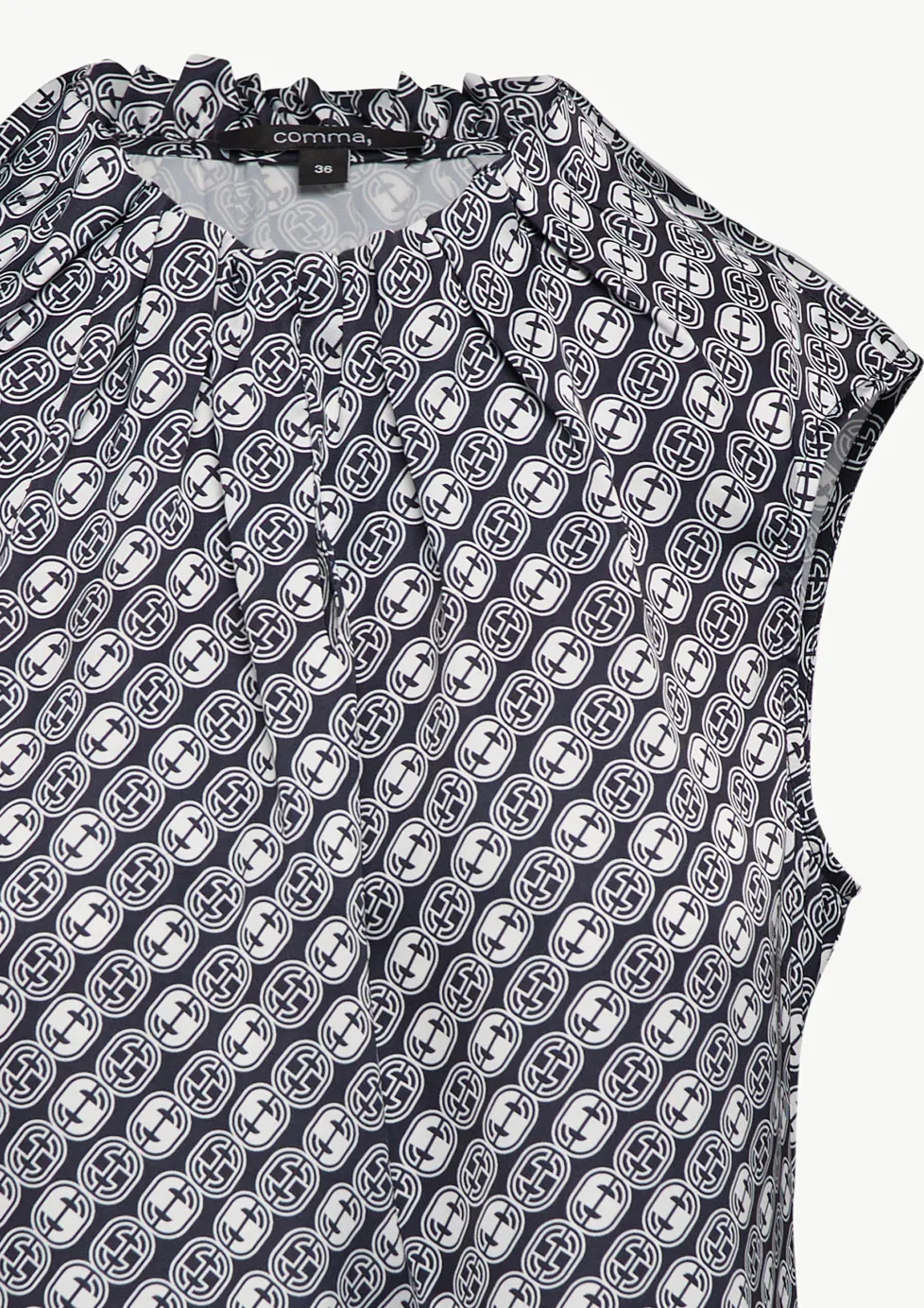 Ärmellose Satin-Bluse mit All-over-Logo-Print