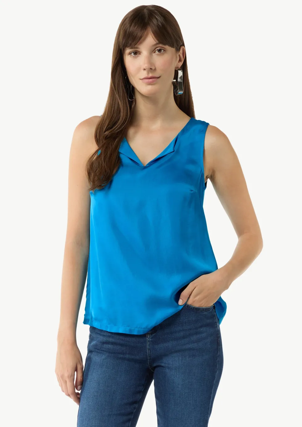 Ärmelloses Shirt aus Viskosemix mit Tunika-Ausschnitt