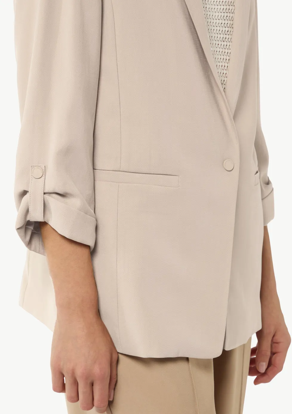- Ärmel:3/4-Ärmel, mit fixiertem Umschlag