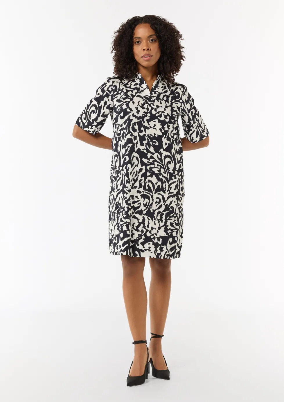 Baumwoll-Kleid mit Hemdkragen und All-over-Print