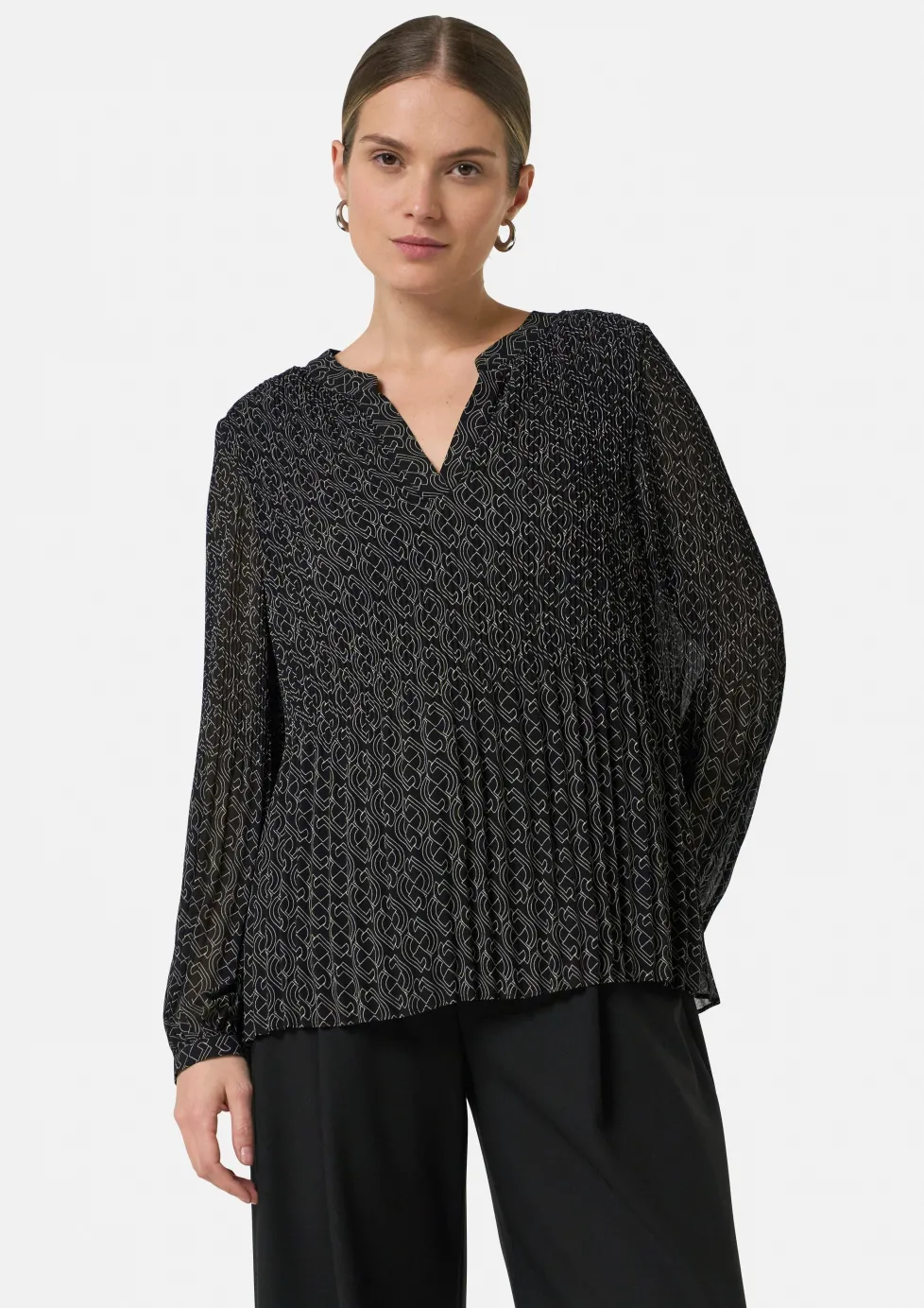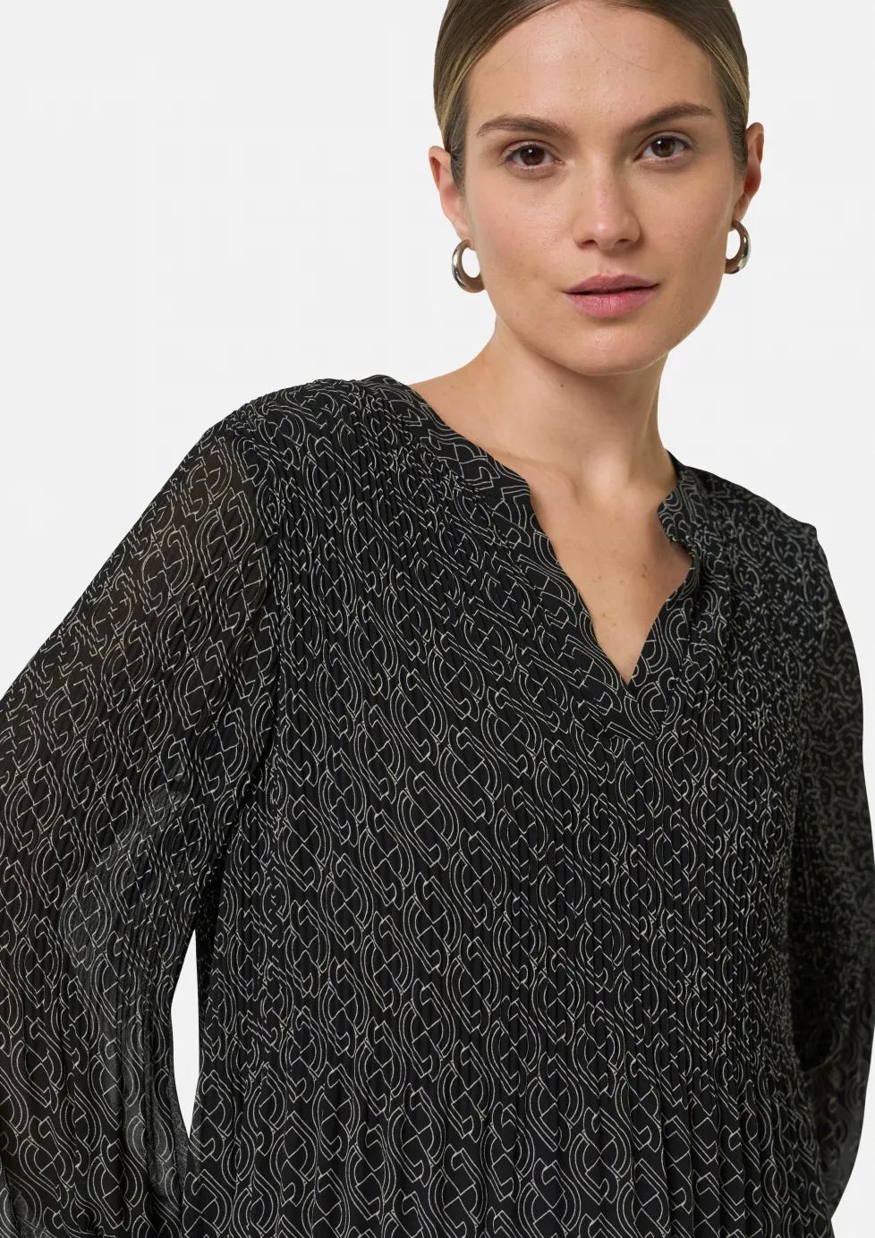 Plissierte Bluse aus Chiffon mit Logomuster