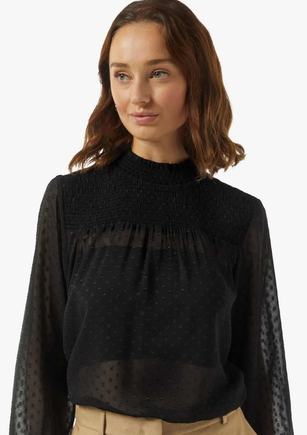 Transparente Jacquard-Bluse mit Smok-Detail