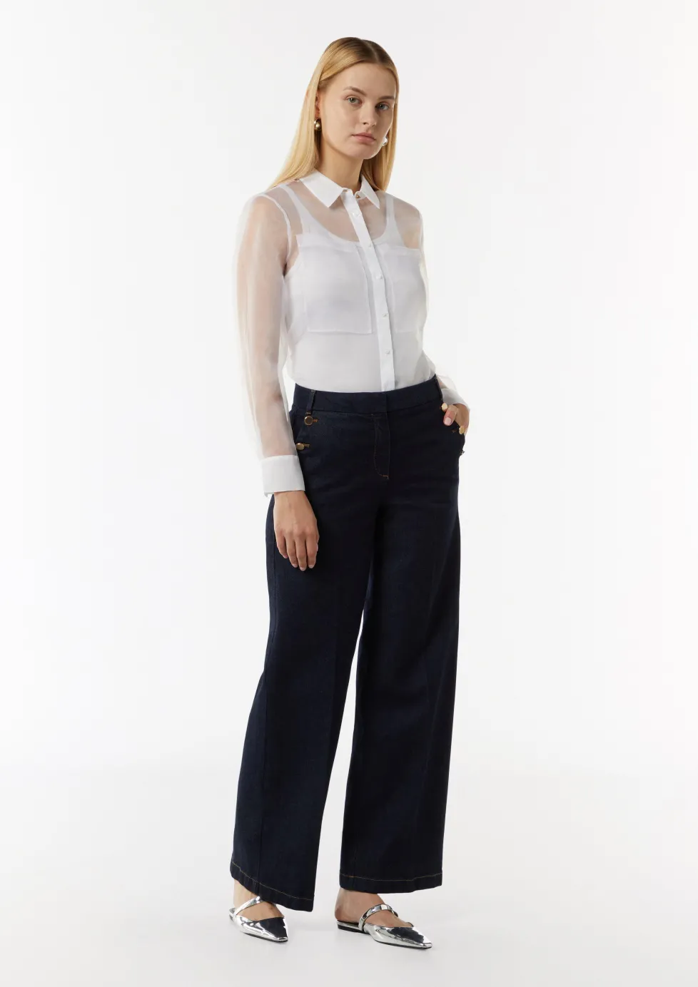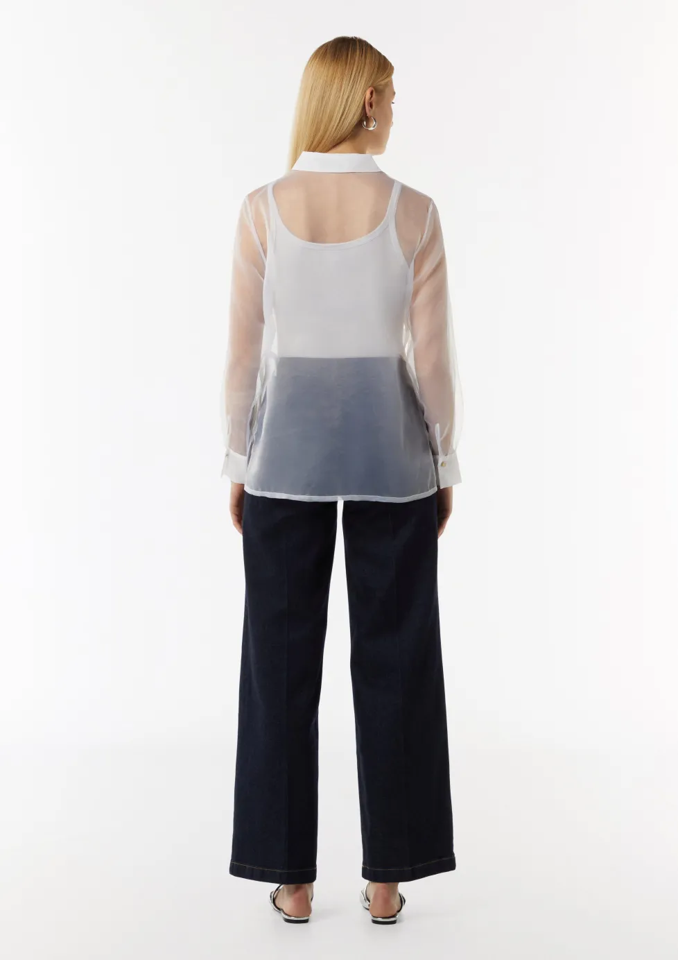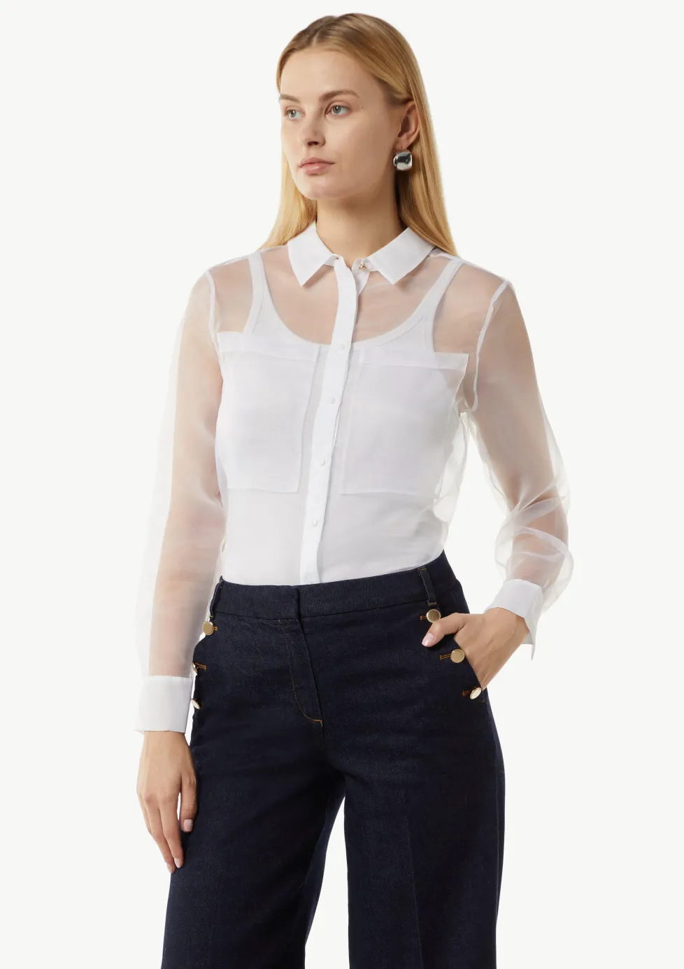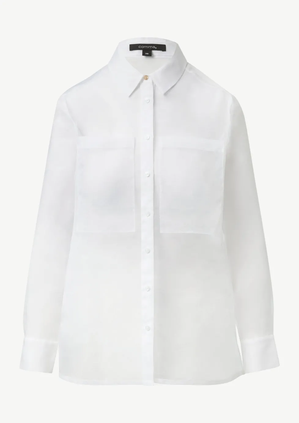 Transparente Organza-Bluse mit aufgesetzten Taschen