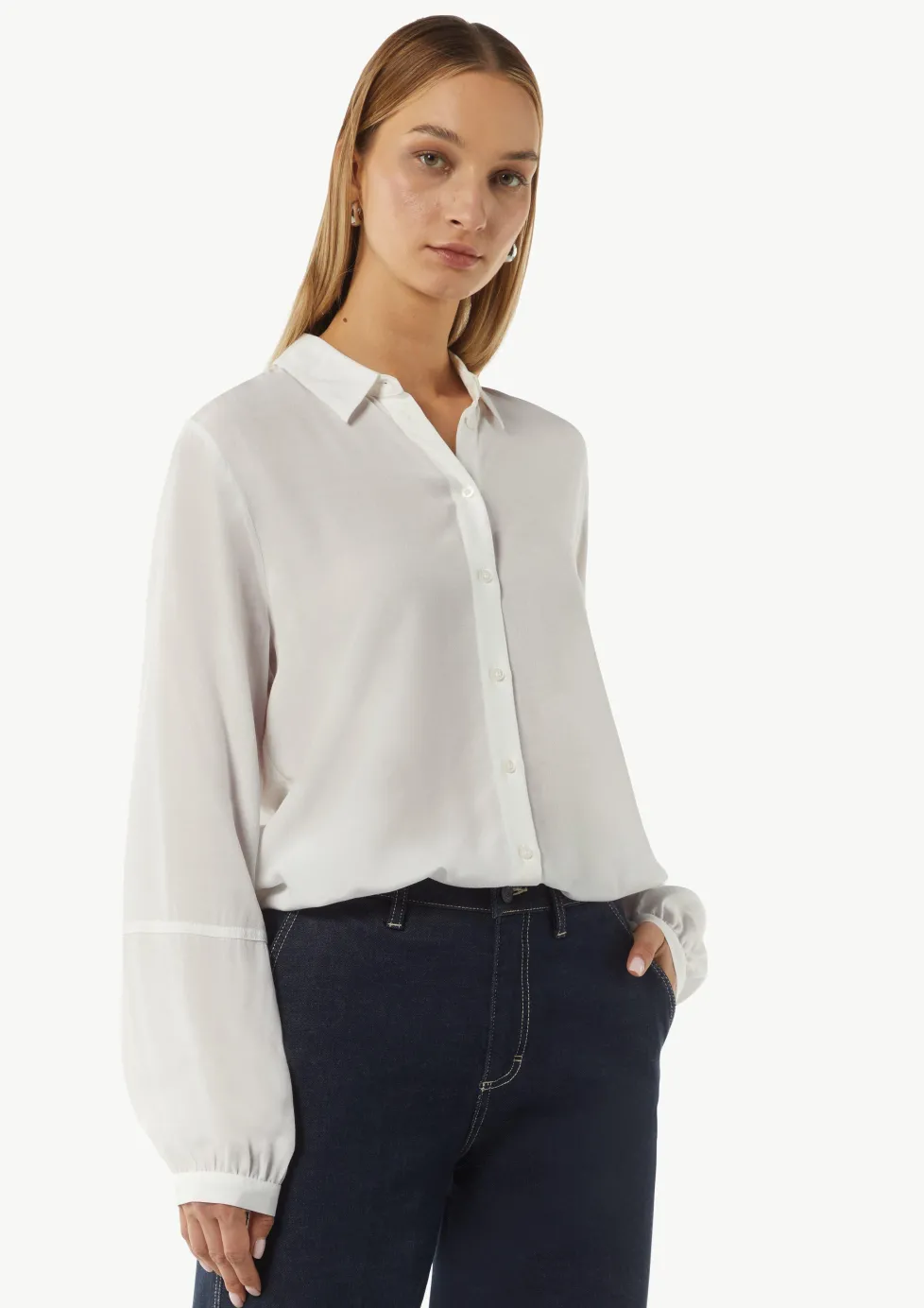 Viskose-Bluse mit Hemdkragen und Ziernaht