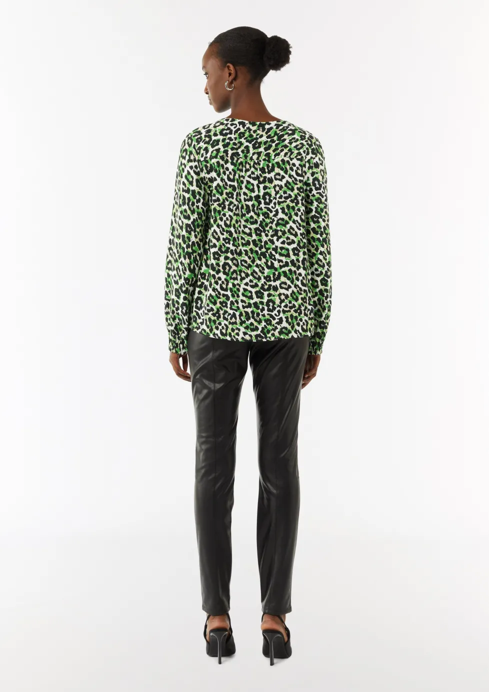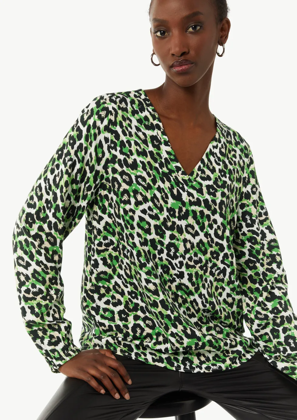 Viskosebluse mit Leo-Muster und V-Ausschnitt