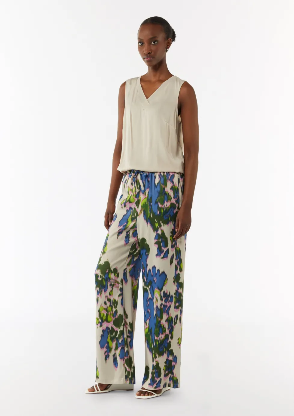 Wide-Leg-Hose aus Satin mit All-over-Print